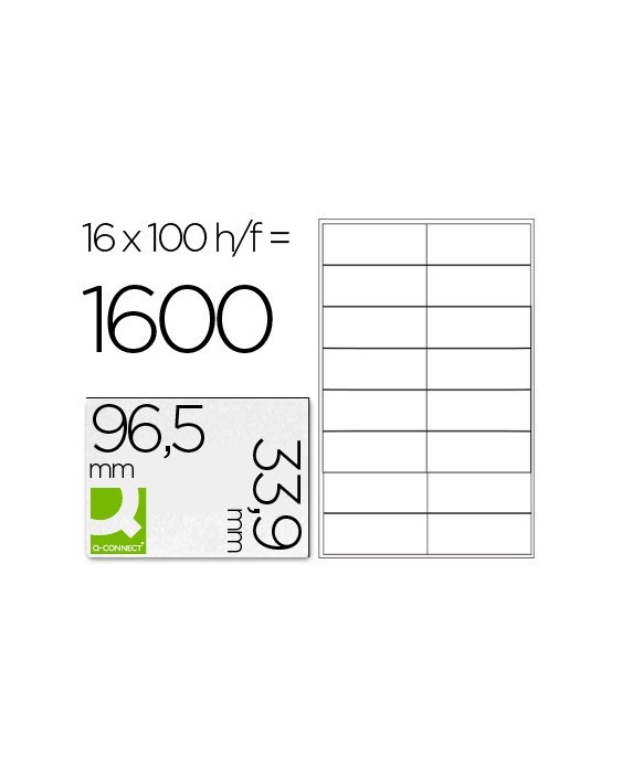 Etiqueta adhesiva q-connect kf10651 tamaño 96,5x33,9 mm fotocopiadora laser ink-jet caja con 100 hojas din a4