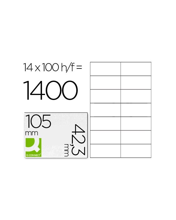 Etiqueta adhesiva q-connect kf10656 tamaño 105x42,3 mm fotocopiadora laser ink-jet caja con 100 hojas din a4