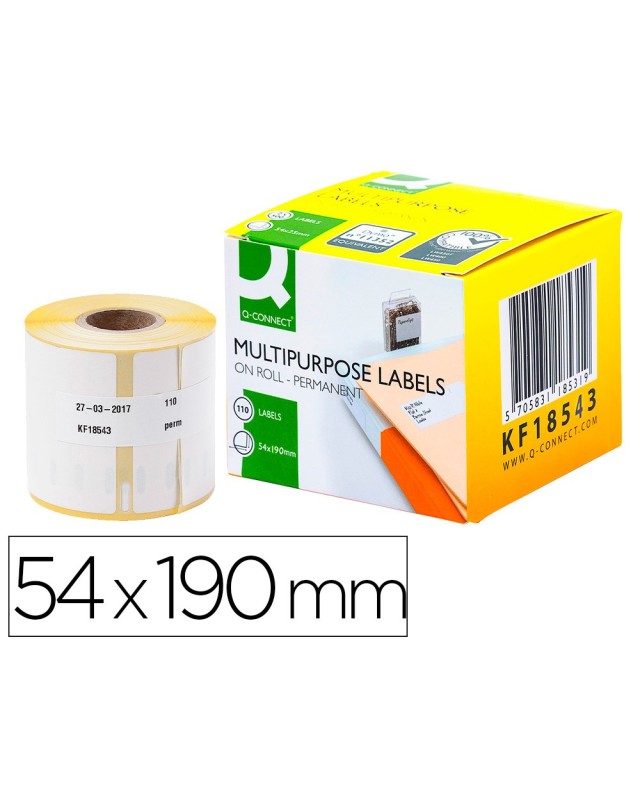 Etiqueta adhesiva q-connect kf18543 compatible dymo 99019 tamaño 54x190 mm caja con 110 etiquetas