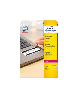 Etiquetas de poliéster blanco resistentey no removible. Si se tenta de quitarla se rompe gracias al precorte de seguridad. Ideales para garantizar la seguridad de informacione y de bienes impresariales.Resistentes a la suciedad, al aceite y al agua. Impermeables y a prueba de rotura. Resistentes a los rayos uv e inalterables a los cambios de temperatura entre -40 y + 100°c. Para impresora láser. Caja de 20 hojas. Se puede utilizar el software crea e imprime gratuito de Avery para realizar el diseño de las etiquetas con pocos clics.