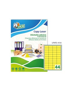 Etiqueta adhesiva de papel fluorescente amarilla, ideal para señalización.3080 Tico. Medidas: 47,5x25,5 mm. Utiliza el software crea e imprime grat uito de Tico para realizar el diseño de las etiquetas con pocos clics. Caja de 70 hojas Din A4 fabricada con papel certificado FSC.