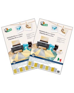 Etiqueta adhesiva tico papel satinado oro / plata laser medidas surtidas caja de 626 unidades