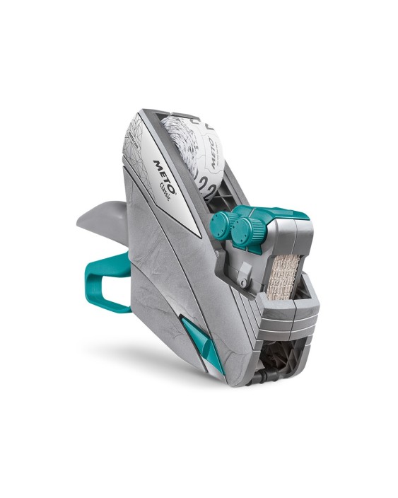 Dispositivo profesional de etiquetado, adecuado para marcaje de precios, fecha etiquetado, etiquetado de artículos, de lotes, de máquinas, número de empleados, etc. Ergonómico, 2 líneas, apto para etiquetas 26 x 16 mm. 10 caracteres por línea (con una altura 4,3 mm, abajo 4,3 mm). Monedas: EUR, GBP, CHF, kr., SK, Huf, ZT hrk, k , Lei. Listo para usar con etiquetas de papel y tinta.