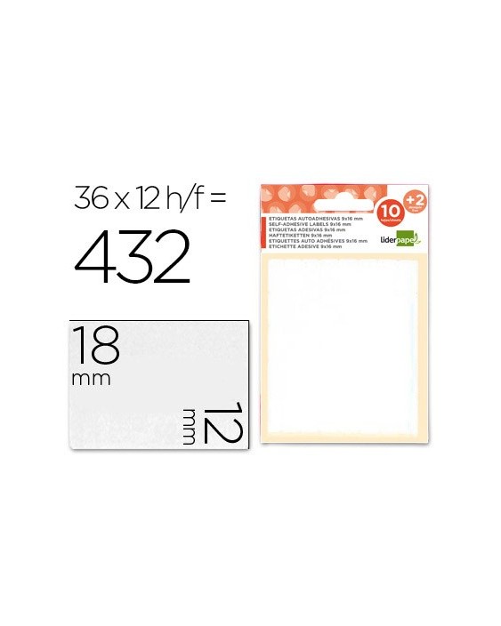 Etiquetas liderpapel sobre de 10 h. + 2 h. obsequio 12x18 mm -36 unidades por hoja