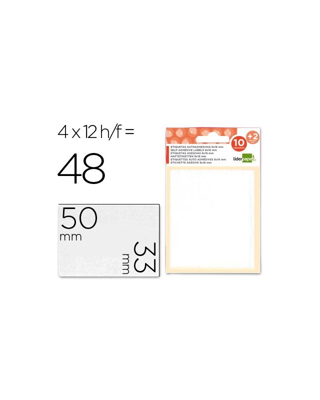 Etiquetas liderpapel sobre de 10 h. + 2 h. obsequio 33x50 mm -4 unidades por hoja