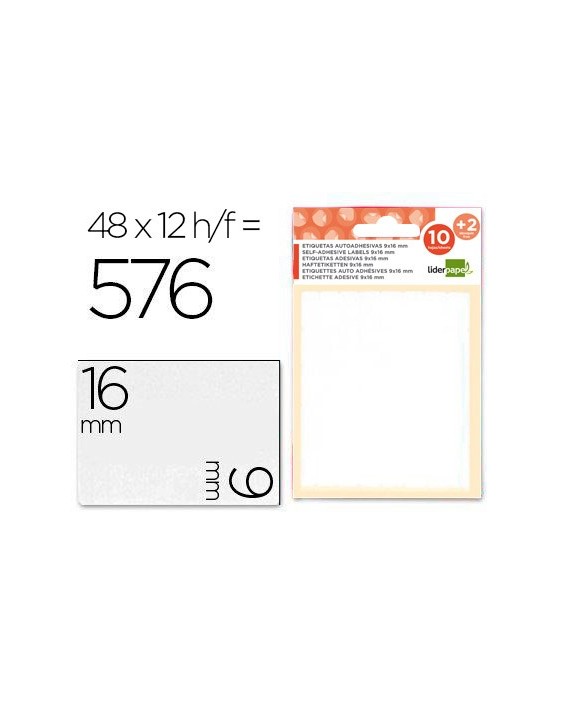 Etiquetas liderpapel sobre de 10 h. + 2 h. obsequio 9x16 mm -48 unidades por hoja
