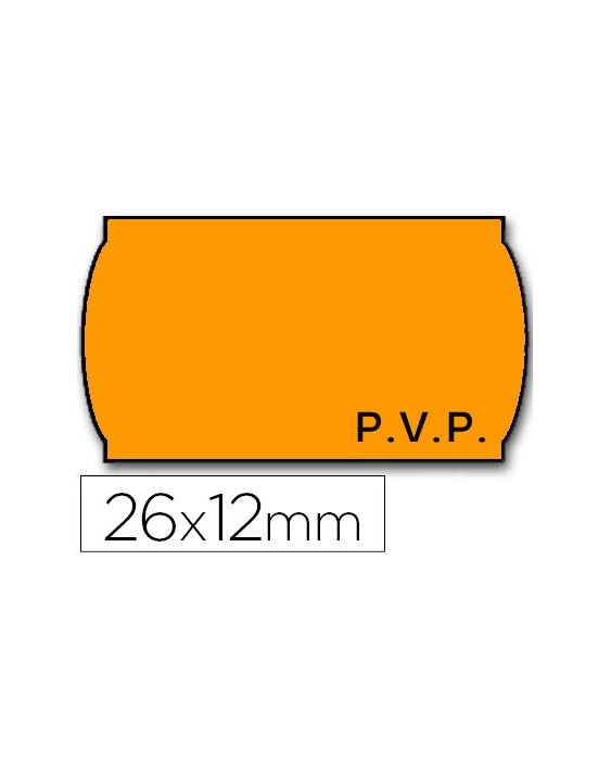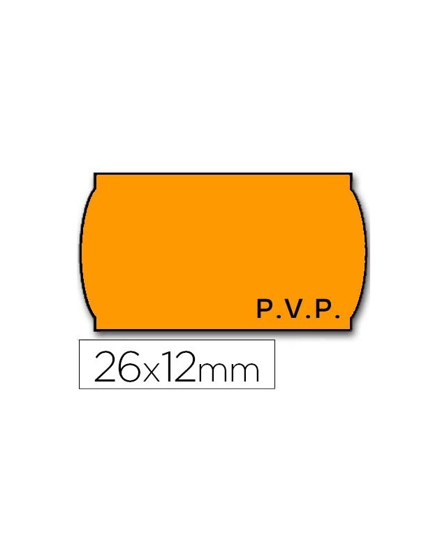 Etiquetas meto onduladas 26x12 mm pvp naranja fluor adh.2 rollo 1500 etiquetas para etiquetadora tovel