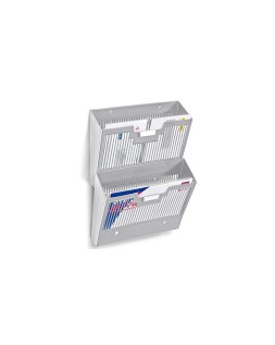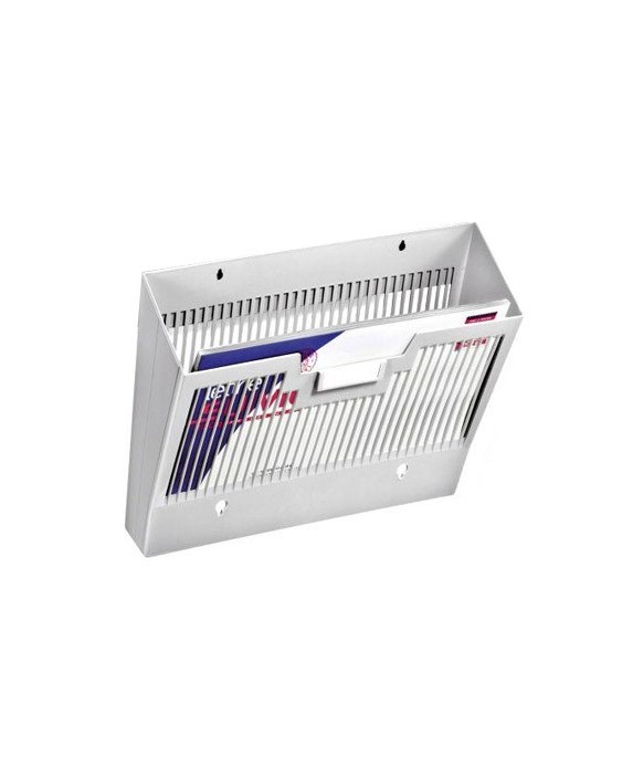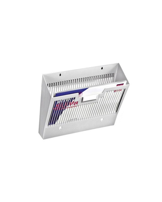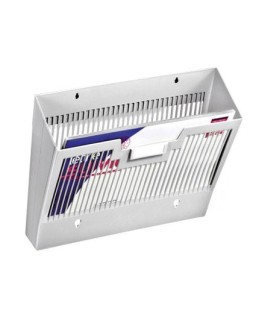 Expositor de rejilla de gran capacidad para documentos DIN A4 y folio. Acoplable en vertical. Con portaetiquetas central. Apertura ancha para fácil acceso. Equipado con un soporte de etiqueta central, para poder unir las cestas en grupos o por separado. Fabricado en poliestireno reciclable de alto impacto. Color negro. Medidas: 25,7 x 36 x 9,5 cm.