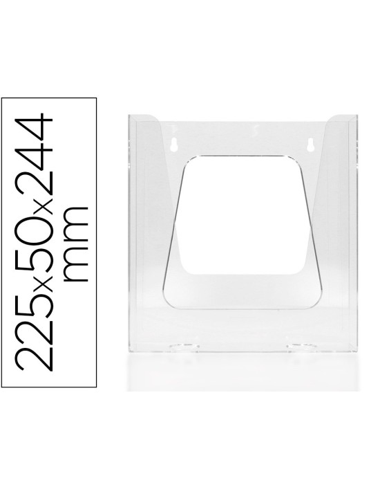 Expositor de metacrilato de gran resistencia ideal para folletos y otros documentos. Posición vertical. Un compartimento. Su color transparente cristal asegura una atractiva presentación y una fácil localización del contenido. Con agujeros traseros para facilitar su colocación en la pared.
