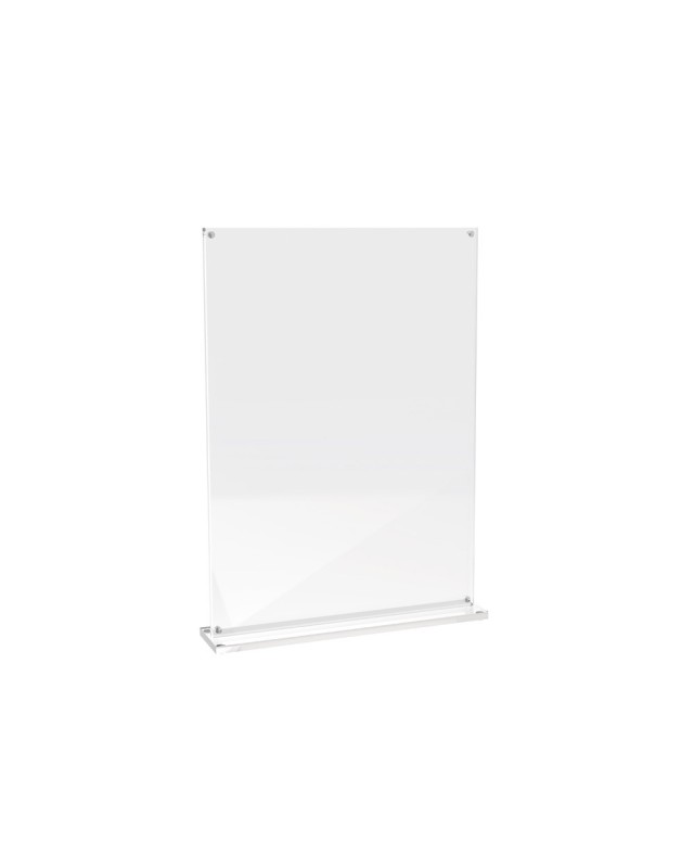 Elegante soporte de cambio rápido fabricado en acrílico de alta calidad. A4. Cambio sencillo con sujeción magnética: retire el frontal, cambie el contenido, vuelva a colocar el frontal y listo. Ideal para fotos, menús, tarjetas de mesa, propósitos decorativos o publicidad, en áreas de venta, restaurantes, mostradores de información o recepciones. Práctico: 4 imanes (uno por esquina) mantienen las dos placas acrílicas firmemente unidas. Baseestable gracias a su pie ancho. Alta estabilidad: grosor del material 2 x 4 mm, pie de 8 mm, forma en T resistente. Transparente, cristalino y eleg ante: se adapta armoniosamente a cualquier entorno. Protege: 4 almohadillas de goma transparentes protegen la superficie. Sujeción segura del contenido: No se desliza. Sin bordes ni esquinas afila