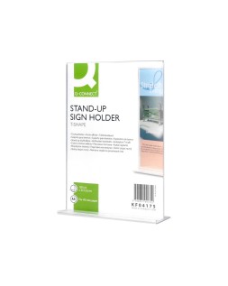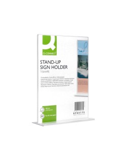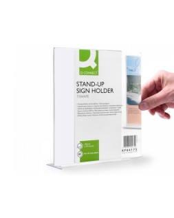 Expositor sobremesa q-connect con forma de t metacrilato tamaño a5 a dos caras
