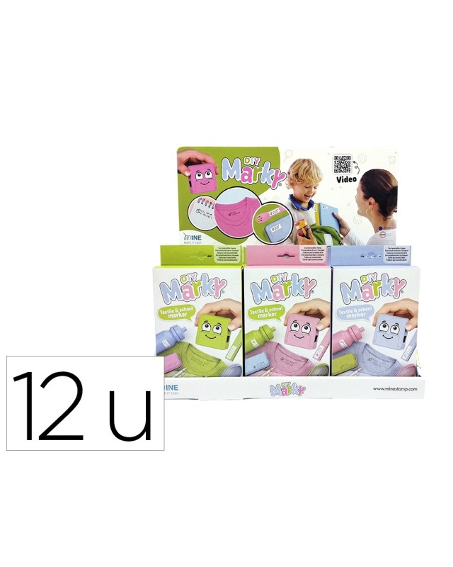 Expositor sobremesa sello marcador de ropa marky infantil 12 unidades 3 colores surtidos