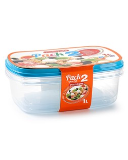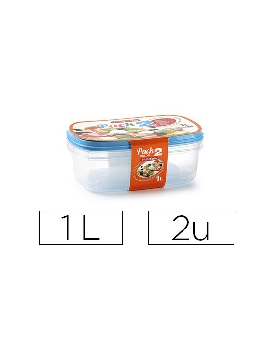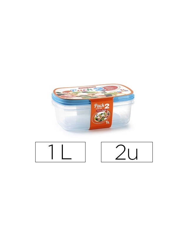 Fiambrera plasticforte transparente tapa color 1 litros pack 2 unidades