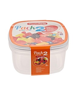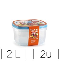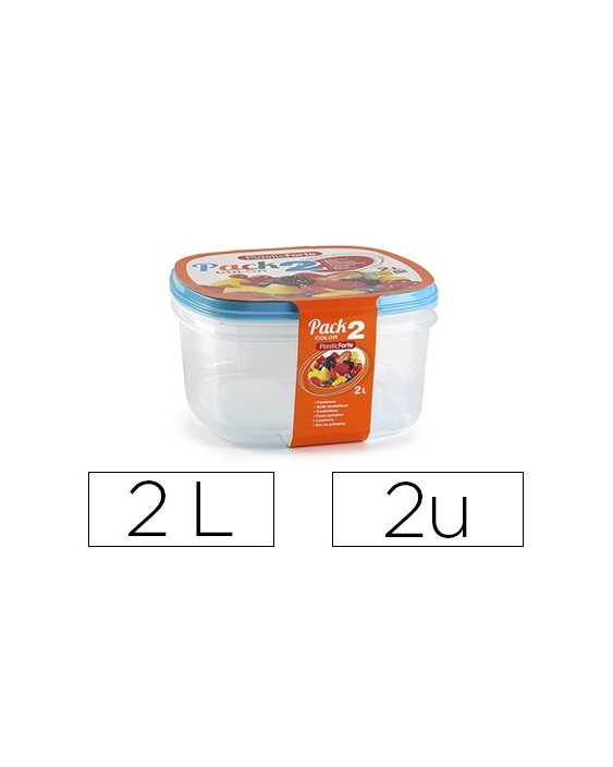 Fiambrera plasticforte transparente tapa color 2 litros pack 2 unidades