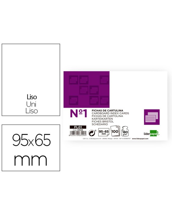 Ficha liderpapel lisa nº1 65x95mm paquete de 100 180g