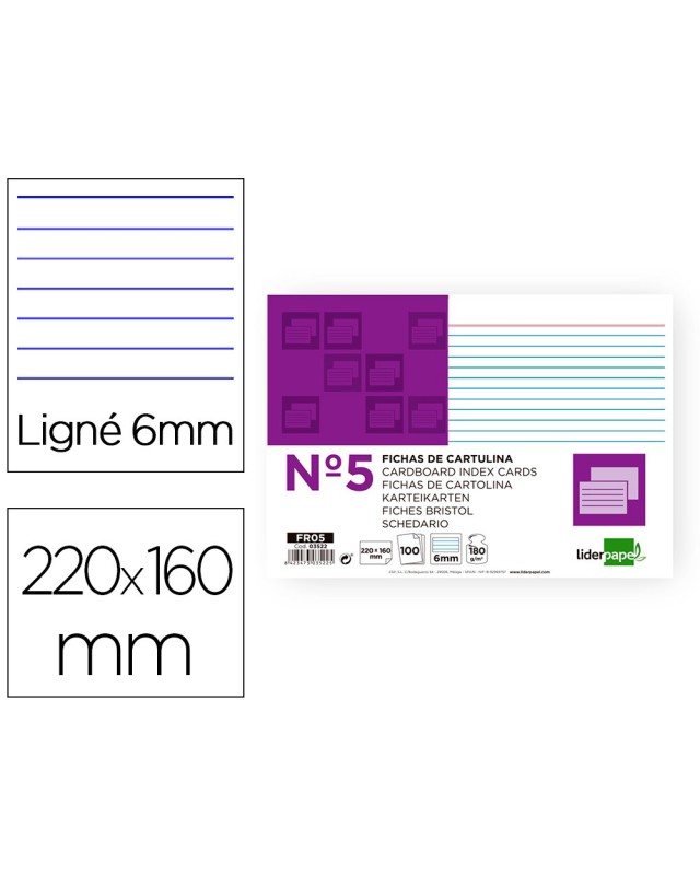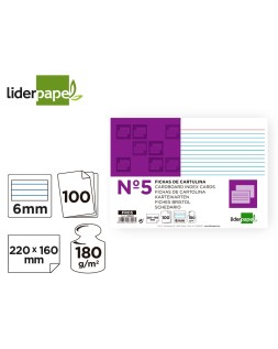 Ficha liderpapel rayada nº5 160x220 mm 180g/m2 paquete de 100 unidades