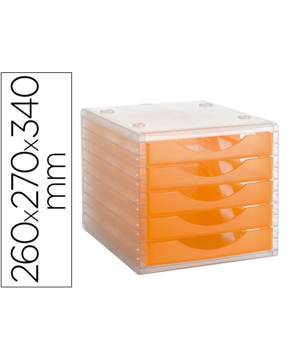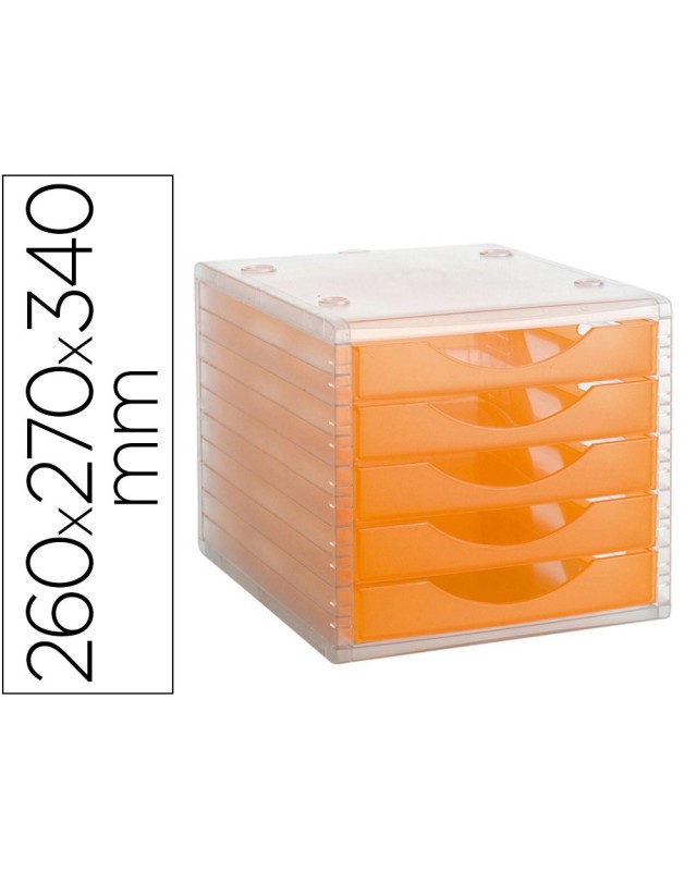 Fichero cajones de sobremesa archivo 2000 apilable 5 cajones naranja translucido 260x270x340 mm