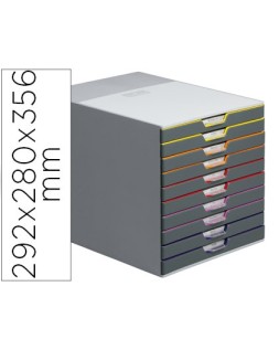 Módulo de cajones fabricado en plástico con perfiles de color que facilitan la organización cuando está cerrado. Apilable sobre apoyos de goma. Cajones de fácil extracción con cierre de seguridad. Con etiquetas imprimibles. Para documentos formato DIN A4, C4, folio y carta. Sistema de organización y clasificación resistente y fácil de ensamblar. La unión de los módulos entre sí mediante clips permite la construcción de todo tipo de estructuras tanto en vertical como en horizontal. Medidas: 282 x 292 x 356 mm.