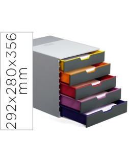 Fichero cajones de sobremesa durable varicolor apilables 5 cajones plastico 292x280x356 mm