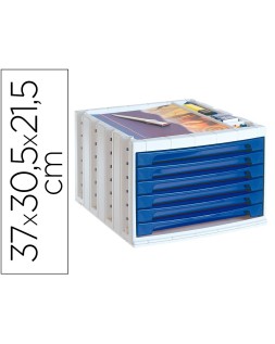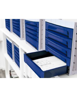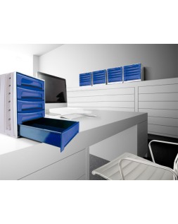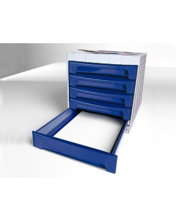 Módulos de cajones apilables y con tope de seguridad para evitar que se caigan al abrirlos. Suave deslizamiento. Agujero en la base para una fácil extracción de los documentos. Acepta documentos de hasta 270 x 320 mm. Incluye bandeja organizadora en la parte superior para tener siempre a mano los accesorios de oficina. Su diseño ergonómico y funcional facilita un apilamiento muy estable con la simple colocación de un módulo sobre otro. Medidas: 305 x 215 x 370 mm.