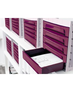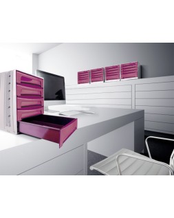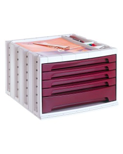 Módulos de cajones apilables y con tope de seguridad para evitar que se caigan al abrirlos. Suave deslizamiento. Agujero en la base para una fácil extracción de los documentos. Acepta documentos de hasta 270 x 320 mm. Incluye bandeja organizadora en la parte superior para tener siempre a mano los accesorios de oficina. Su diseño ergonómico y funcional facilita un apilamiento muy estable con la simple colocación de un módulo sobre otro. Medidas: 305 x 215 x 370 mm.