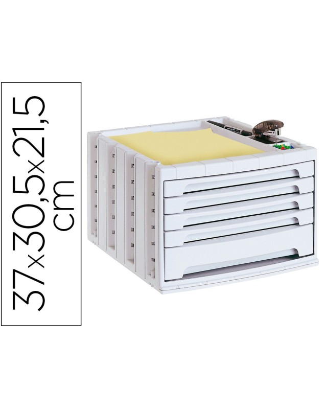Fichero cajones de sobremesa archivo 2000 305x370x215 mm bandeja organizadora superior 5 cajones gris opaco