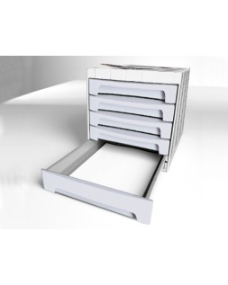 Módulos de cajones apilables y con tope de seguridad para evitar que se caigan al abrirlos. Suave deslizamiento. Agujero en la base para una fácil extracción de los documentos. Acepta documentos de hasta 270 x 320 mm. Incluye bandeja organizadora en la parte superior para tener siempre a mano los accesorios de oficina. Su diseño ergonómico y funcional facilita un apilamiento muy estable con la simple colocación de un módulo sobre otro. Medidas: 305 x 215 x 370 mm.