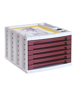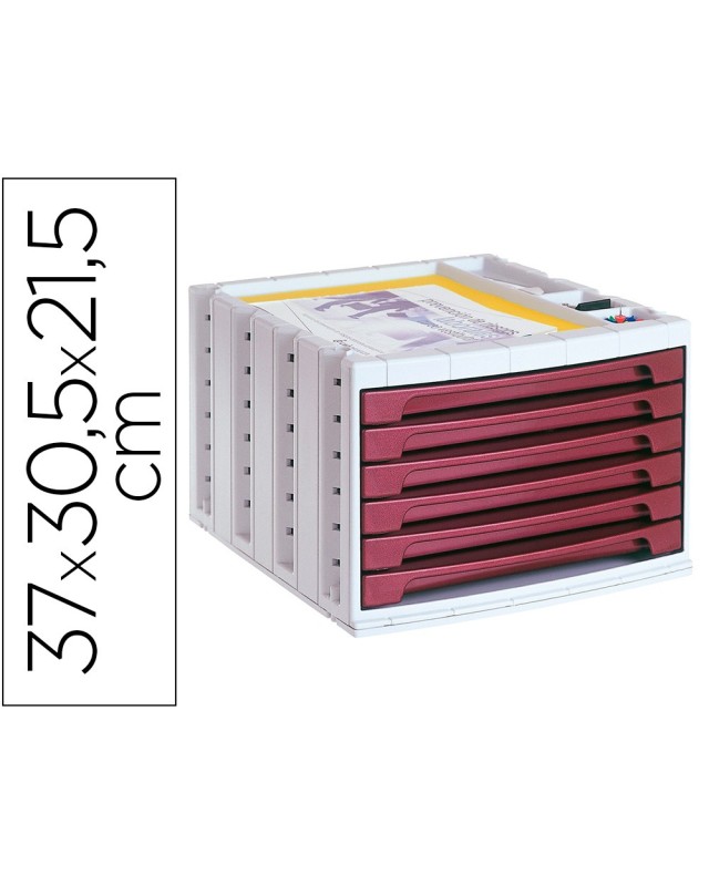 Fichero cajones de sobremesa archivo 2000 305x370x215 mm bandeja organizadora superior 6 cajones burdeos opaco