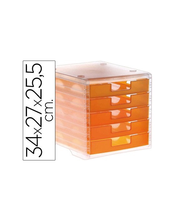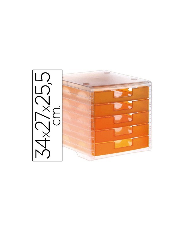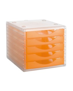 Fichero cajones de sobremesa archivo 2000 340x270x260 mm apilables 5 cajones naranja mandarina translucido