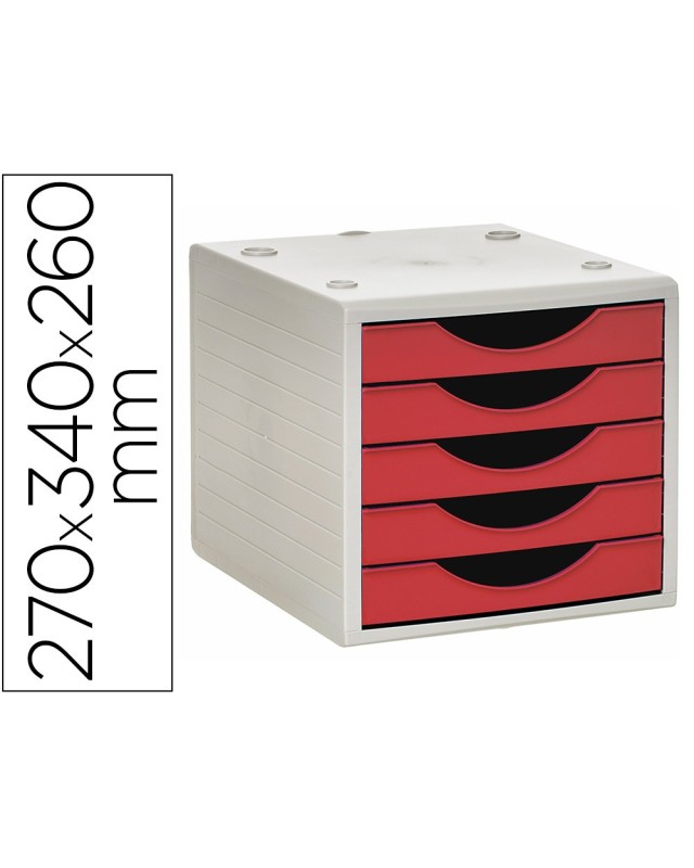 Fichero cajones de sobremesa archivo 2000 5 cajones color rojo opaco 270x340x260 mm