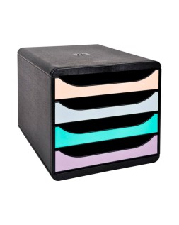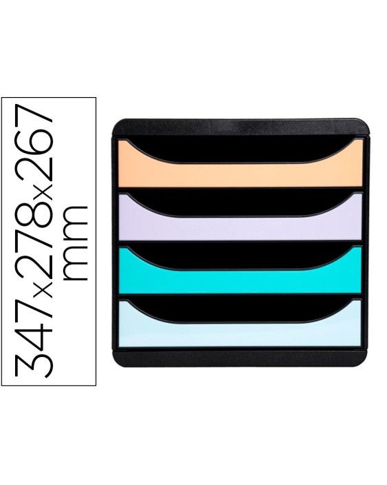 Aquarel - BIG-BOX Aquarel 4 cajones de colores surtidos pasteles. Modulo individual para documentos A4+. Monobloc, ultra rígido. Cajones abiertos que permiten la introducción directa de los documentos. Deslizamiento perfecto de los cajones, con stop de seguridad. Medidas: 347x278x267 mm. Garantia de 25 años. Certificado Angel Azul.