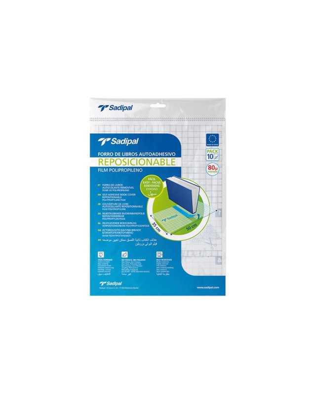 Forralibro adhesivo para libros sadipal reposicionable 80 mc 50x35 cm pack de 10 unidades