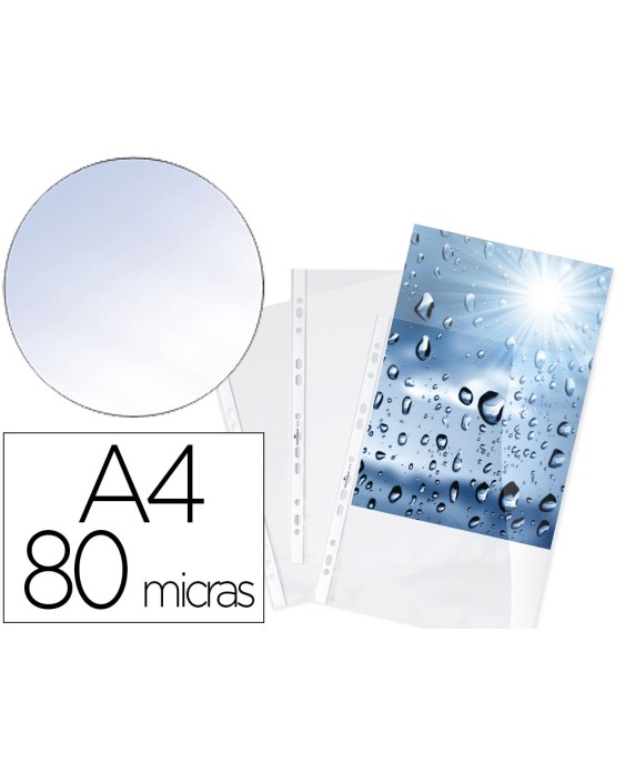 Funda multitaladro. Tamaño Din A4 en vertical, calidad superior, grosor de 0,8 mm, transparente. Apertura en la parte superior y perforación universal. Para el archivo cómodo de documentación no perforada en archivadores ycarpetas de anillas. Se pueden escanear y fotocopiar. Perforaciones refor zadas.