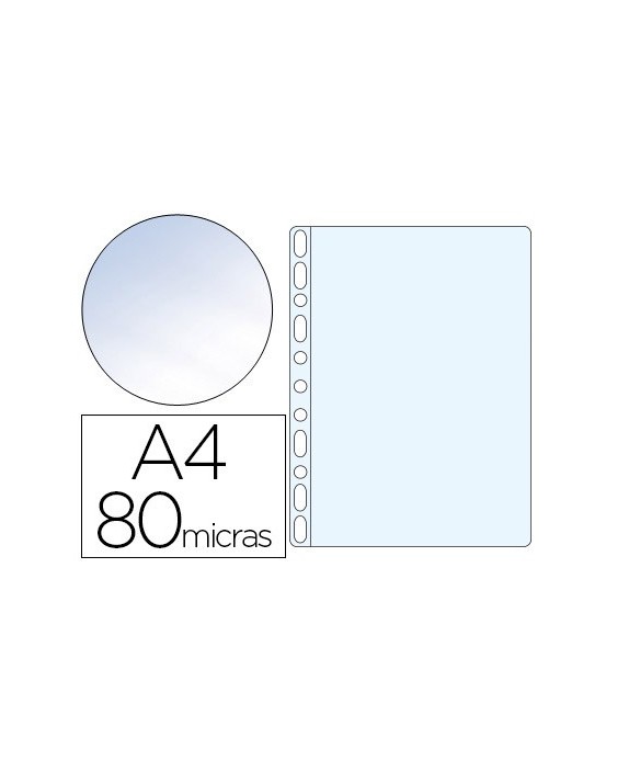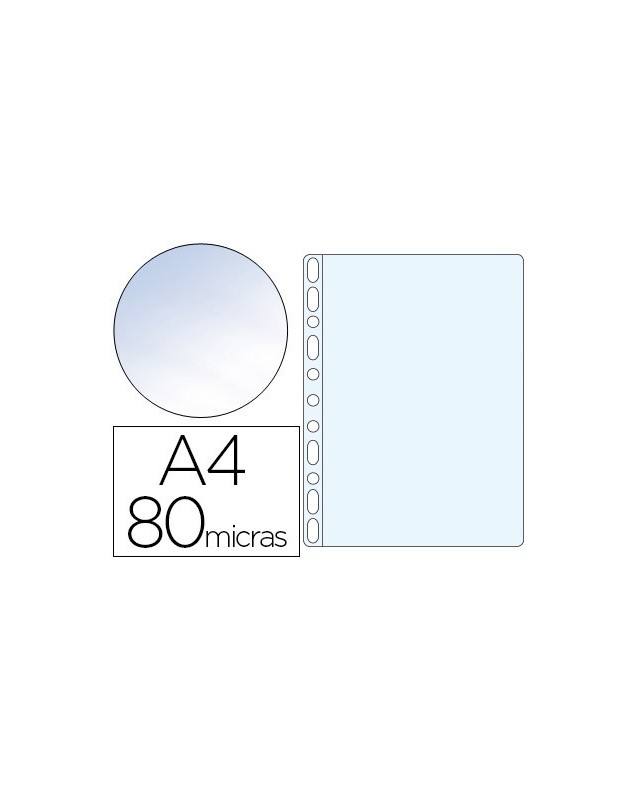 Funda portadocumentos multitaladro para la protección de documentos. Fabricada en polipropileno cristal liso. Copysafe: evita que la tinta de los documentos se quede adherida a la funda. Taladros con refuerzo. Grosor: 80 micras. La caja de 100 unidades.