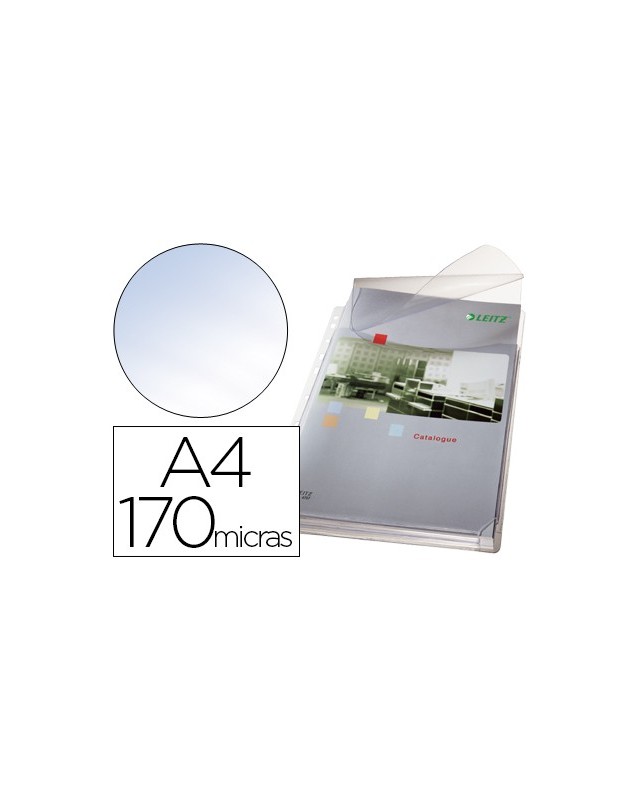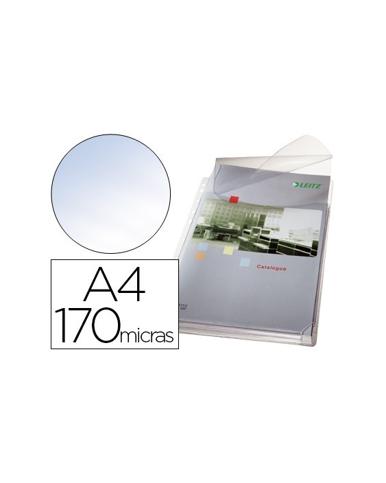 Funda con solapa superior que facilita el acceso a los documentos y los mantiene seguros dentro de ella. Ideal para el archivo de documentos gruesos. Fabricada en PVC de 170 micras. Expansible hasta 20 mm. 11 taladros. Cristal. Capacidad de hasta 200 hojas. Formato DIN A4. El pack de 5 unidades.