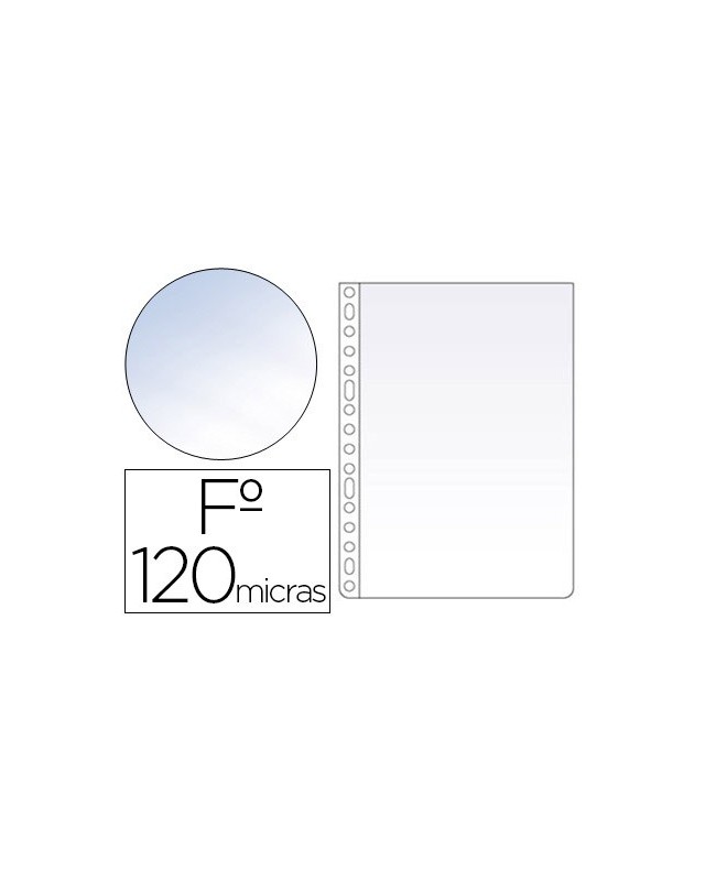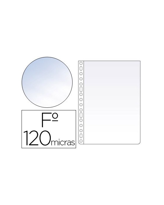 Funda porta documentos multitaladro para la protección de documentos. Fabricada en polipropileno cristal liso. Copysafe: evita que la tinta de los documentos se quede adherida a la funda. 16 taladros. Grosor: 120 micras. Tamaño folio. La caja de 100 unidades.