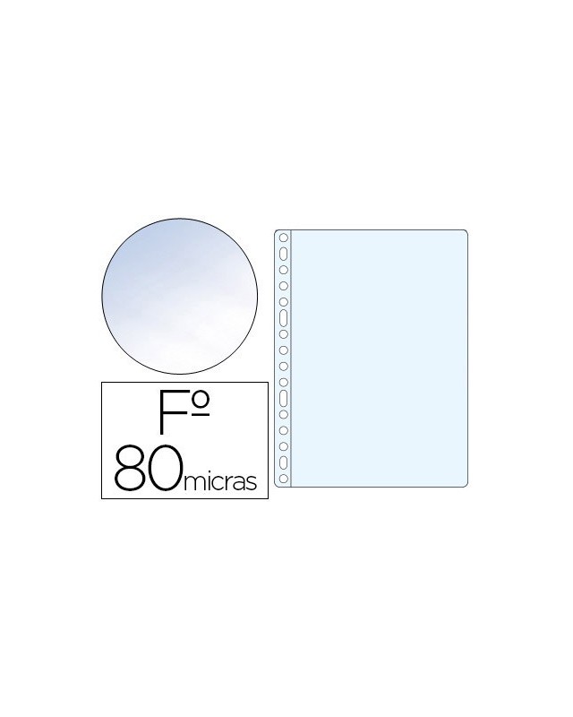 Funda portadocumentos multitaladro para la protección de documentos. Fabricada en polipropileno cristal liso. Copysafe: evita que la tinta de los documentos se quede adherida a la funda. Taladros con refuerzo. Grosor: 80 micras. La caja de 100 unidades.