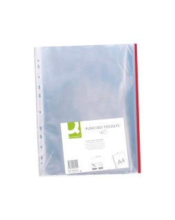 Funda multitaladro q-connect din a4 70 mc pp cristal con borde rojo bolsa de 10 unidades
