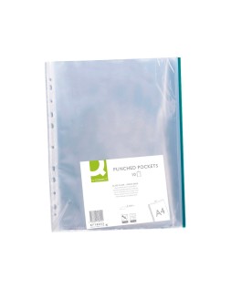 Funda multitaladro q-connect din a4 70 mc pp cristal con borde verde bolsa de 10 unidades