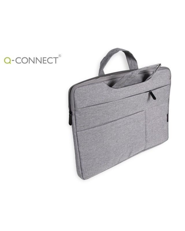 Funda para portatil q-connect 15,6\" con asas retractiles cremallera 3 bolsillos exteriores gris