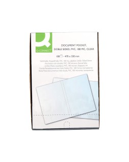 Funda portadocumento q-connect folio doble 180 micras pvc transparente 330x470mm