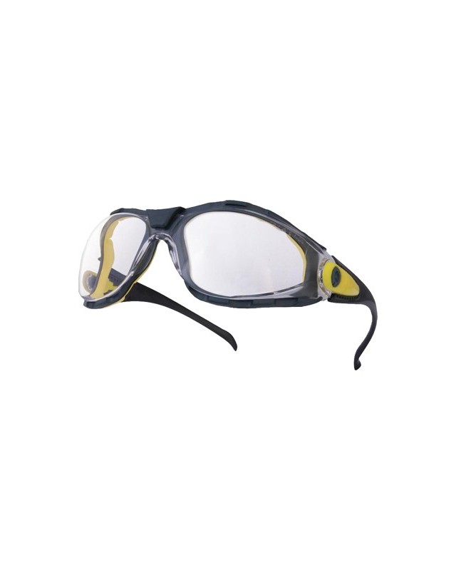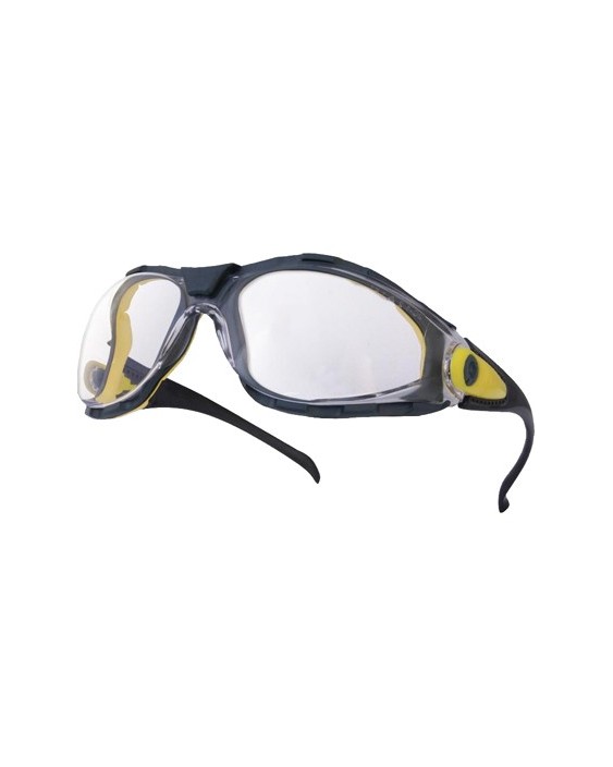 Gafas de policarbonato monobloque. Puente nasal de policarbonato integrado. Patillas de nylon abatibles. Protecciones laterales. Antivaho, antirrayaduras y con protección UV400. Peso: 36 g. HOMOLOGADO EN NORMA EN166: 1FT/ FT, EN172:UV2C-1.2 Y ANSI Z87.1-2003: Z87+U6.