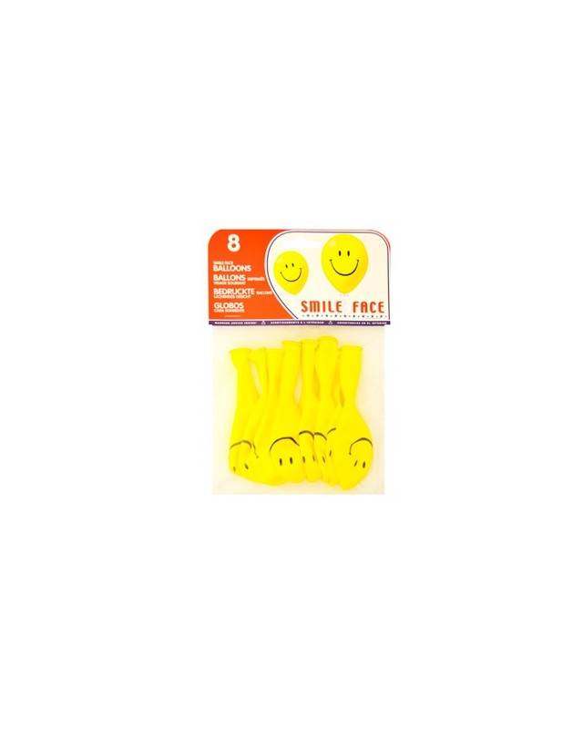 Globo 100% latex biodegradable cara sonriente bolsa de 8 unidades