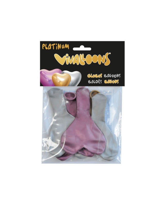 Globo 100% latex biodegradable corazon platinum blister de 5 unidades