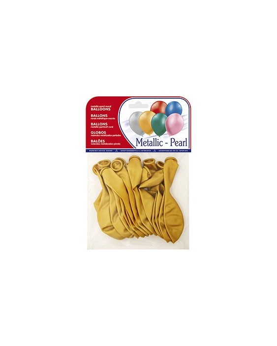 Globo 100% latex biodegradable metalizado oro bolsa de 15 unidades