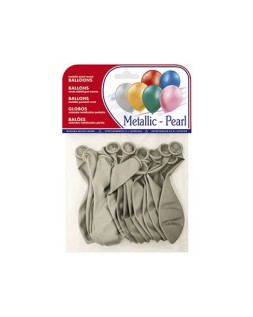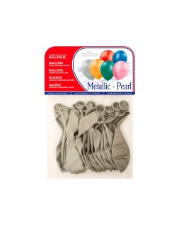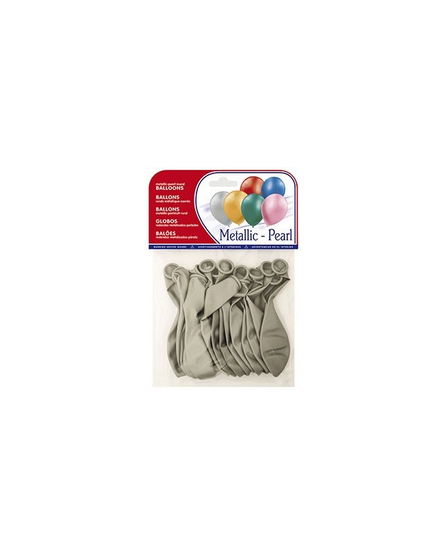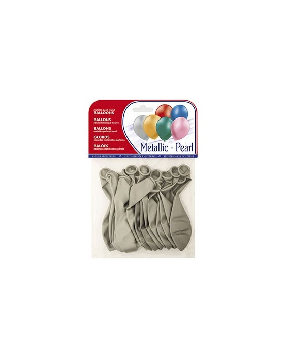 Globo 100% latex biodegradable metalizado plata bolsa de 15 unidades