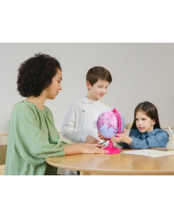 Esfera con luz física y política de 20 cm de diámetro. Color Rosa, con base y meridiano de plástico. Divertido y educativo para uso en el hogar y laescuela, para personas curiosa a explorar el mundo. Perfecto para regalos de cumpleaños, trabajo, regalos de Navidad, también ideal para decoracion es de hogar y oficina.