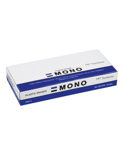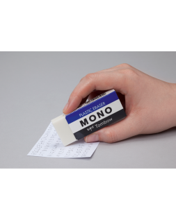 Un verdadero clásico en Japón desde 1969. Goma plástica premium suave que proporciona un borrado excelente. Faja protectora de papel que protege la goma de la suciedad. La faja tiene las esquinas redondeadas para evitar que la goma se corte cuando se aplica presión sobre la misma. Ideal para estudiantes y especialmente popular entre dibujantes de Manga y cómics. Material: PVC, libre de ftalatos y látex. Tamaño L. 38 g. Para usuarios intensivos.