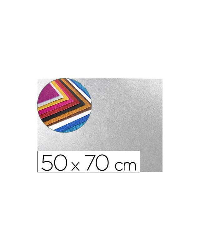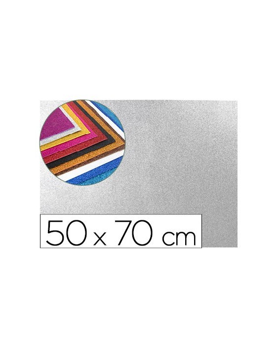 Goma eva con purpurina biodegradable liderpapel 50x70cm 60g/m2 espesor 2 mm plata
