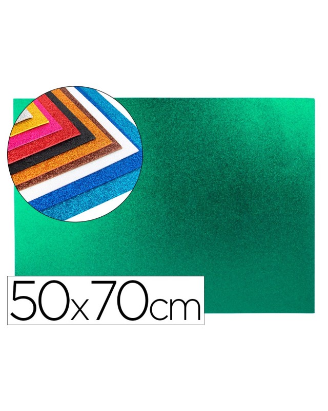 Goma eva con purpurina biodegradable liderpapel 50x70cm 60g/m2 espesor 2 mm verde